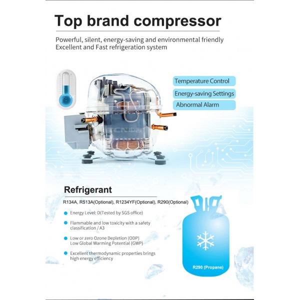 15. Σύστημα ψύξης με ψυκτικό R134a, R290, R513A, R1234Y, μπορεί να πληροί τις απαιτήσεις ROHS.